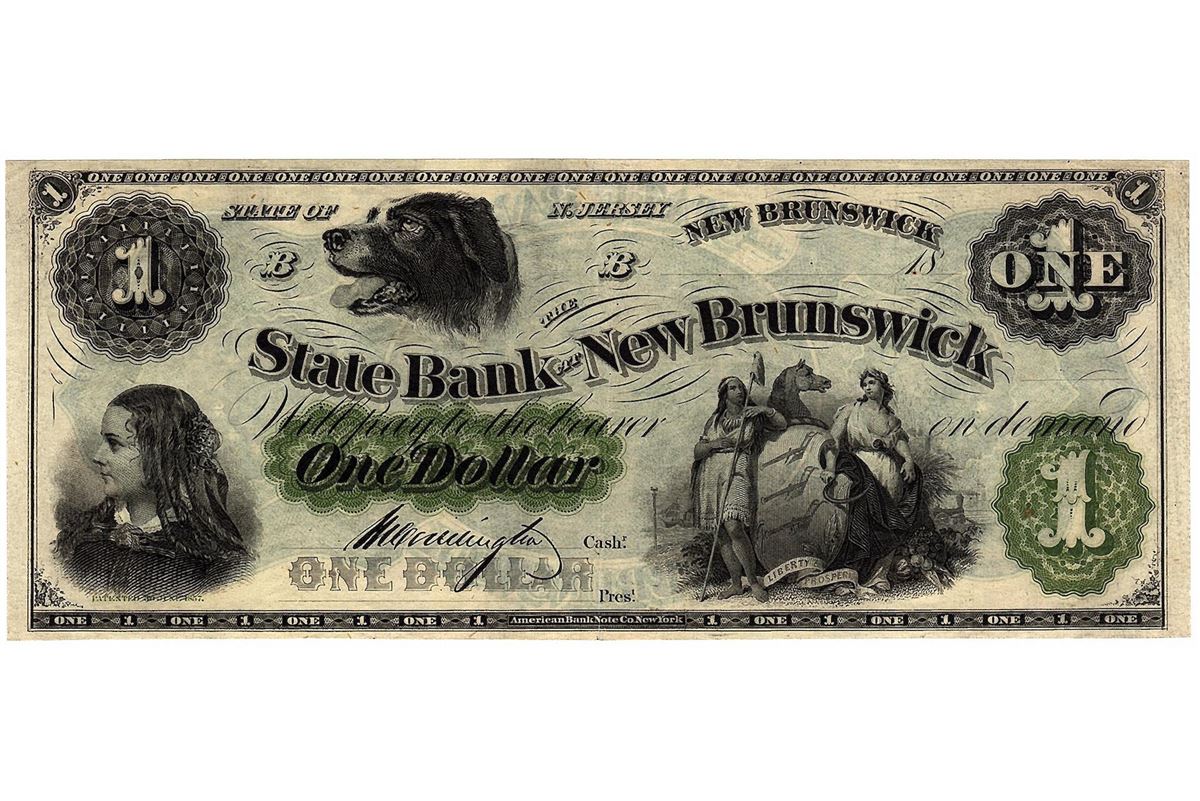 One 1800's $1 State Bank at New-Brunswick Obsolete Currency Note.