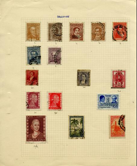 1800s/1950s Argentina Hand Made Stamp Collection Album Page 16 Pieces (STM-0263)