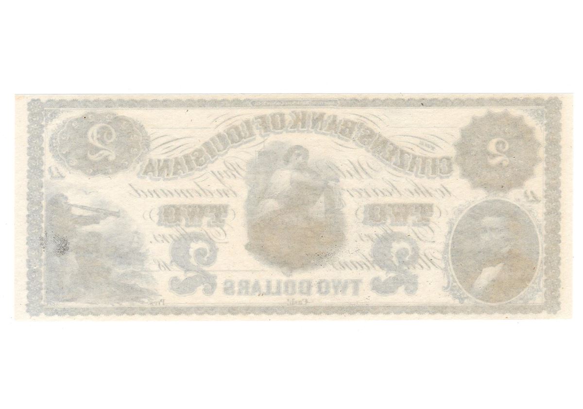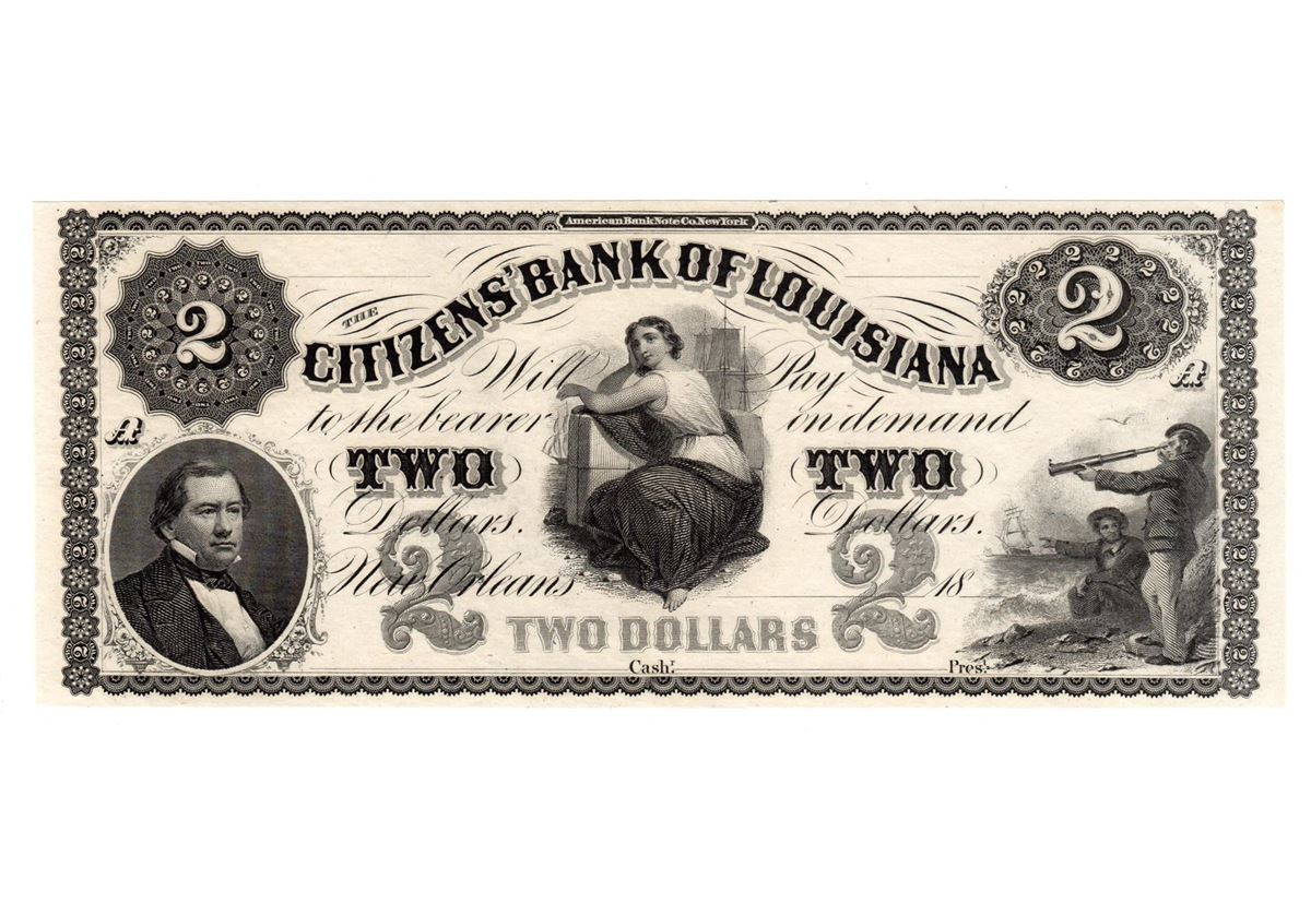 One 1800s $2 $The Citizens Bank of Louisiana Obsolete Note.
