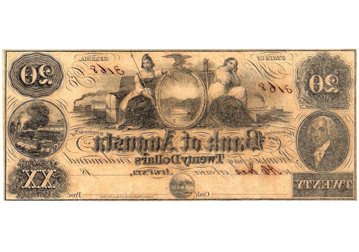 One 1800's $20 State of Georgia Bank of Augusta Obsolete Currency Note.