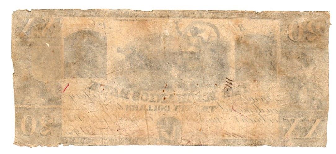 One 1800s $20 The Mechanics Bank Augusta Georgia Bank Note.
