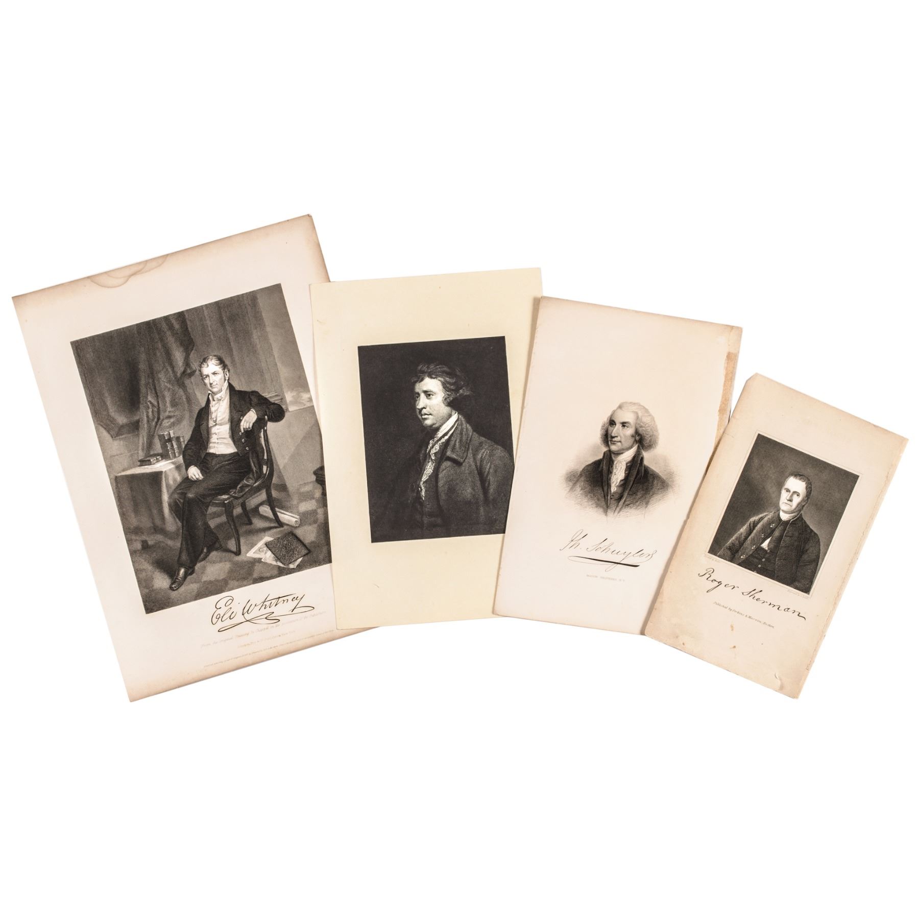 1800’s, Lot of 4 Portrait Prints of Famous Americans, Including Eli Whitney, Philip Schuyler, and Declaration of Independence signer, Roger Sherman, Very Fine to Extremely Fine.