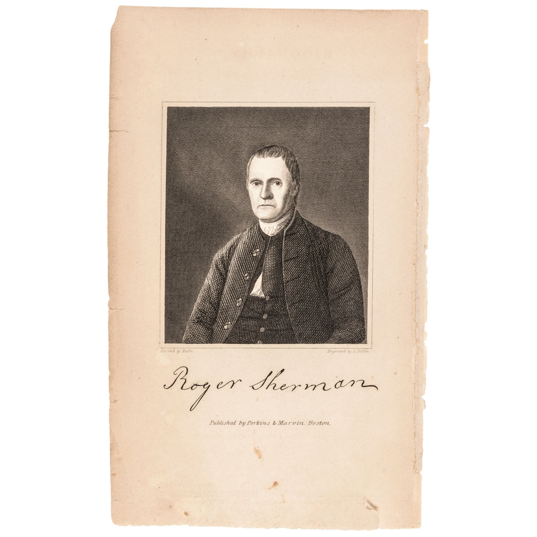 2. ROGER SHERMAN, engraved by Oliver Pelton, after a painting by Earle, very nice condition, aside from small tears in the edges, could be trimmed and framed.