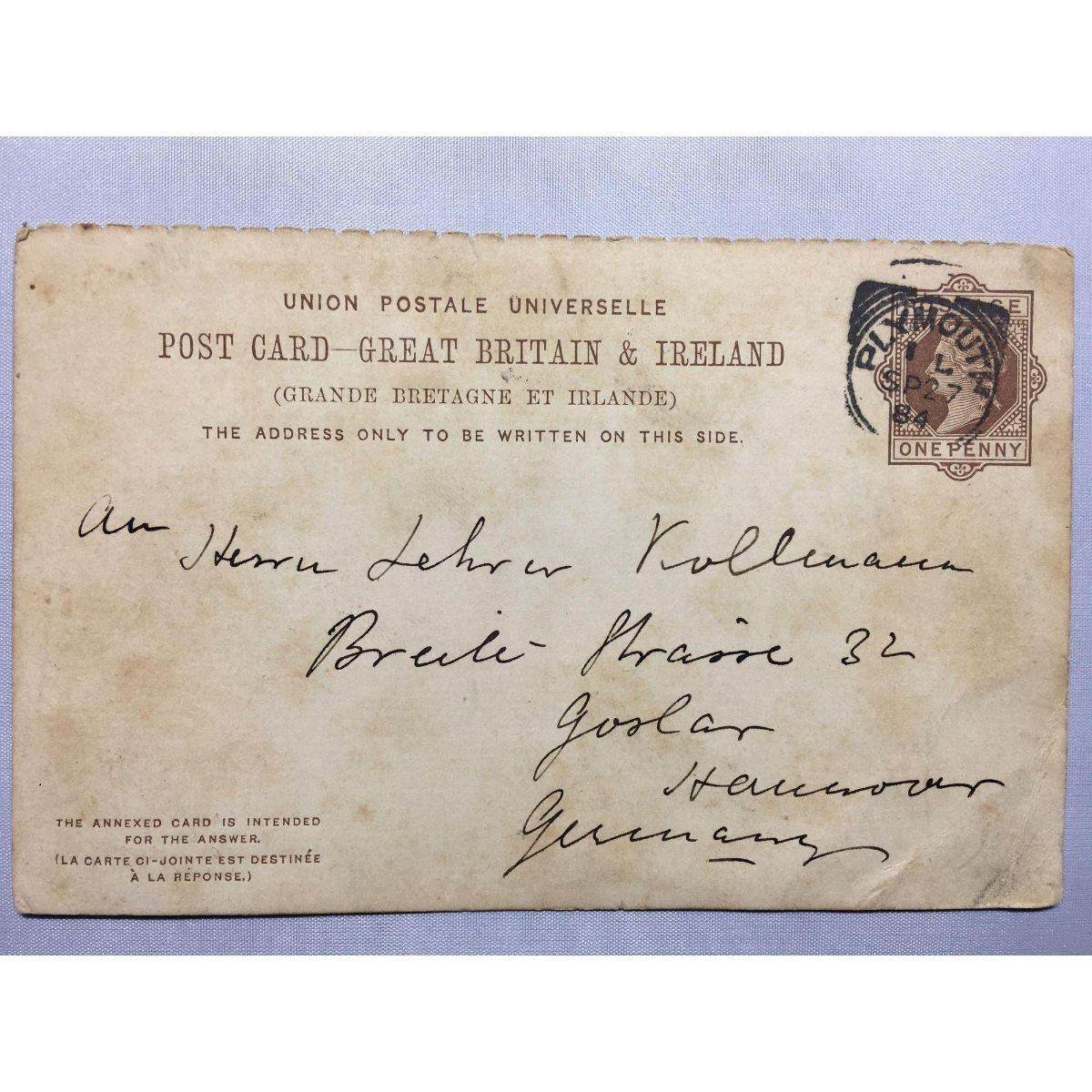 Plymouth stamped original iron gall handwritten post card now in a protective sleeve with a British pennystamp.Â