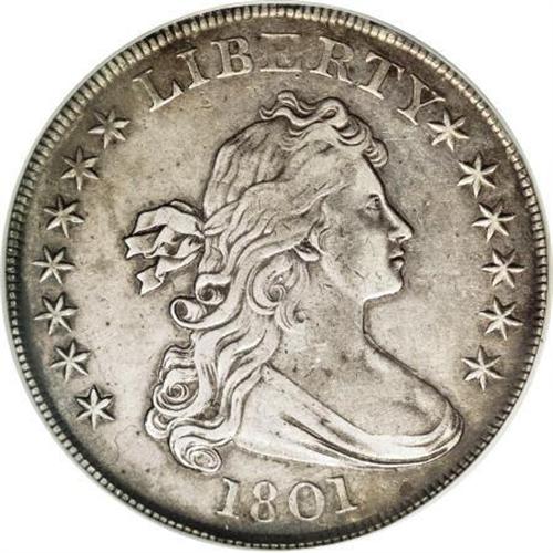 <B>1801 $1 --Cleaned--ANACS. XF45 Details.</B></I> B-2, BB-212, R.3. Lightly cleaned some time ago, and now with medium gray fields, lighter devices, and darker steel toning near the obverse and reverse borders. Although there are no rare varieties of 1801, the date is considered scarcer than its neighbors.<BR><I>From The John Stimson, Sr. Collection, Part Two.</B></I><BR><BR><B>Coin Engraver:</B> Robert Scot<BR><BR><b>Shipping:</b> Coins & Currency (<a target="_blank" href="http://www.heritageauctions.com/common/shipping.php">view shipping information</a>)