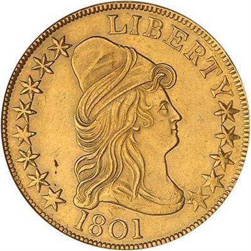 Tooled. Where a collector might expect to see the usual deviation in the sharp relief, mainly in the centers of the coin where the design often failed to completely fill the dies, this better than average 1801 specimen takes the opposite road by being boldness personified! There is some die clash in the cap from the shield lines of the reverse that takes the form of several raised lines, almost like rays.