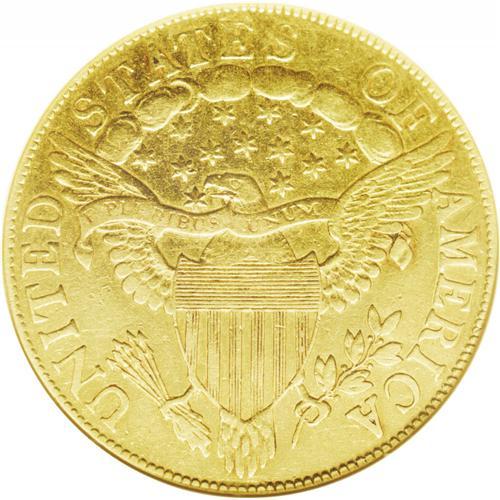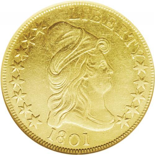 <B>1801<$10>--Cleaned--ANACS. XF45 Details.</B></I> Breen-6843, B. 2-B, Taraszka-25, R.3. A subdued but sharp yellow-gold representative. A tiny obverse rim ding is noted at 1:30, and a small number of light mint-made adjustment marks accompany the reverse. Taraszka-25 is readily distinguished from the only other die marriage for the date by the presence of bold spikes within the cap folds; these are apparently clashmarks although they do not correspond to elements of the reverse design.
