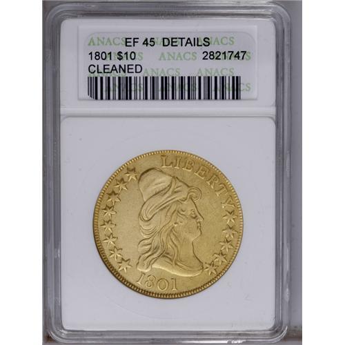1801 $10 --Cleaned--ANACS. XF45 Details. Breen-6843, B. 1801[$10]--Cleaned--ANACS. XF45 Details.