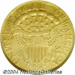 <B>1801<$10>--Repaired, Scratched, Whizzed--ANACS. AU Details, Net VF20.</B></I> B. 2-B, Taraszka 25, R.3. The surfaces have been obviously cleaned at one time, and are now retoned a honey-gold color with subtle reddish undertones. That being said, the coin has extraordinary detail with strong definition on most of the stars on both sides, sharp feather detail on the eagle, and a relatively strong E PLURIBUS UNUM. The design elements are nicely centered on the planchet. A few shallow scratches are present on the obverse, mostly extending from the center of Liberty's portrait into the left field. A long, shallow scratch on the reverse from the rim at 11 o'clock traverses the clouds on the upper right, the tip of the eagle's left wing, and the first A in AMERICA. The right obverse field appears to have been smoothed, and there is what seems to be metal dislocation between the C and A of AMERICA.<BR><I>From The Paulsboro Collection, Part Two.</B></I> <BR><BR><B>Important notice:</B> Heritage usually auctions material at the rate of 200-250 lots per hour. On some occasions eBay Live bid software or the Internet may not be able to keep up with the pace of the auction. We recommend placing a realistic absentee bid now as insurance to avoid disappointment. Occasionally the auctioneer may eliminate or reject an eBay Live bid, and the auctioneer may also reopen a lot after the close of the eBay live bidding (usually because we missed an audience bid), and may reject your bid even if it shows you as the winning bidder. By bidding via eBay Live, you agree that Heritage may award the lot to another bidder at its sole discretion under the circumstances described above or any other reasonable circumstances. Since eBay bids are not shown to us until we open the lot on the floor, we treat those bids just like floor bids. In most cases the floor responds before the eBay bid is presented to us, due to Internet lag time, so for consistency we have made it a policy that floor bids are always considered first over tie eBay live bids. Also please note that all Heritage lots purchased through eBay Live carry a 20% Buyer's Premium. Please make sure you read the Terms and Conditions before you bid. </span></font></tr></table></td></tr></table>