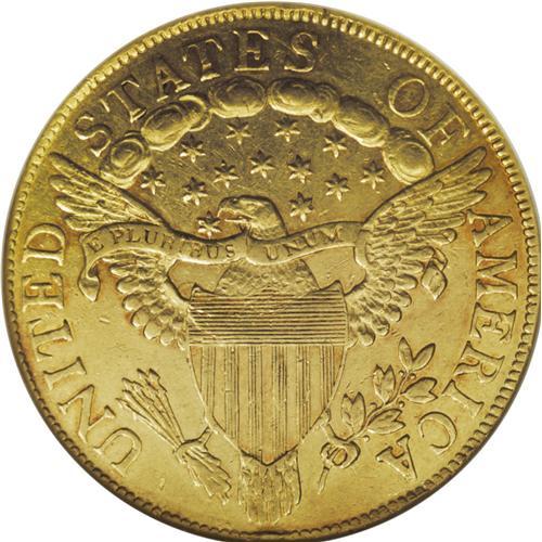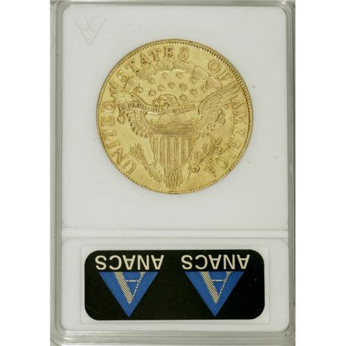 <B>1801 $10 --Rim Filed, Cleaned--ANACS. AU50 Details.</B></I> Breen-6843, Taraszka-25, BD-2, R.2. The usual dies for the 1801, with the first star relatively distant from the lowest curl. No rim filing is detected, but the obverse edge appears to be filed between 12 and 1 o'clock. Small rim nicks are noted on the obverse at 3:30, and on the reverse at 6 o'clock. Luster brightens the borders and devices, and the strike is precise throughout. A glass reveals a few unimportant marks. Only lightly cleaned, and in terms of eye appeal, there is little that separates this sharply struck example from a typical AU50 piece.<BR><BR><b>Shipping:</b> Coins & Currency (<a target="_blank" href="http://www.heritageauctions.com/common/shipping.php">view shipping information</a>)