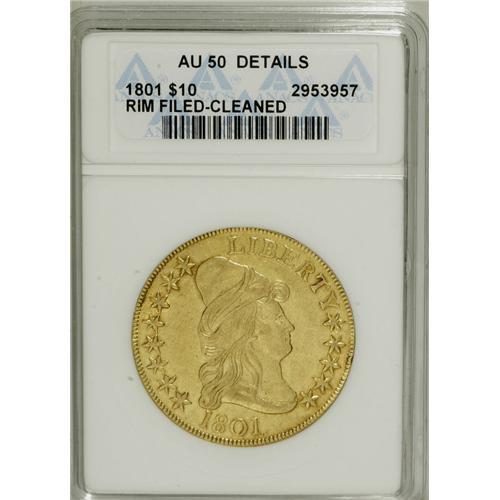 1801 $10 --Rim Filed, Cleaned--ANACS. AU50 Details. Bre