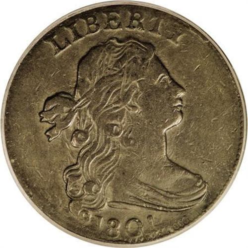 <B>1801 1C 1/000 VF25 PCGS.</B></I> S-220, B-12, R.3. Breen Die State IV-V. A dark brown cent with glossy corrosion-free surfaces. Unexpectedly sharp for the grade, since Liberty's hair is impressively detailed. A concealed vertical mark above the ear will identify the present piece in any future appearances. EAC 12.<BR><BR><b>Shipping:</b> Coins & Currency (<a target="_blank" href="http://www.heritageauctions.com/common/shipping.php">view shipping information</a>)