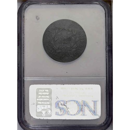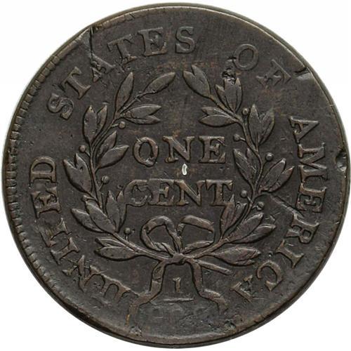 <B>1801<1C> 3 Errors. S-219, B-11, Low R.2--Obverse Scratched--NCS. VF Details. Fine 12 EAC.</B></I> Die State III. This variety shares with the S-218 the famous Three Errors reverse. It is here married with an obverse featuring a pointed first 1 and a low 8 in the date that leans to the right. Besides the traditional hallmarks, in this die state a crack runs not quite from the rim through NI, under the (purported) U, and on this coin crossing from the first 0 into the second 0. This glossy, dark-brown example has surfaces that hide the obverse scratches, but under a glass several long, light scratches reveal themselves. These really do not distract, however, and the appealing surfaces and sufficient remaining detail mitigate their presence. Liberty's hair shows considerable sculptural effects and the date is bold, although LIBERTY is weak. The reverse is weakest at the fraction, perhaps because of the associated die break. The central details are bold. There are a couple of reverse rim nicks and scrapes. Not a perfect coin, but a pleasing representative of this popular variety, with few flaws visible to the naked eye. Envelope Included.