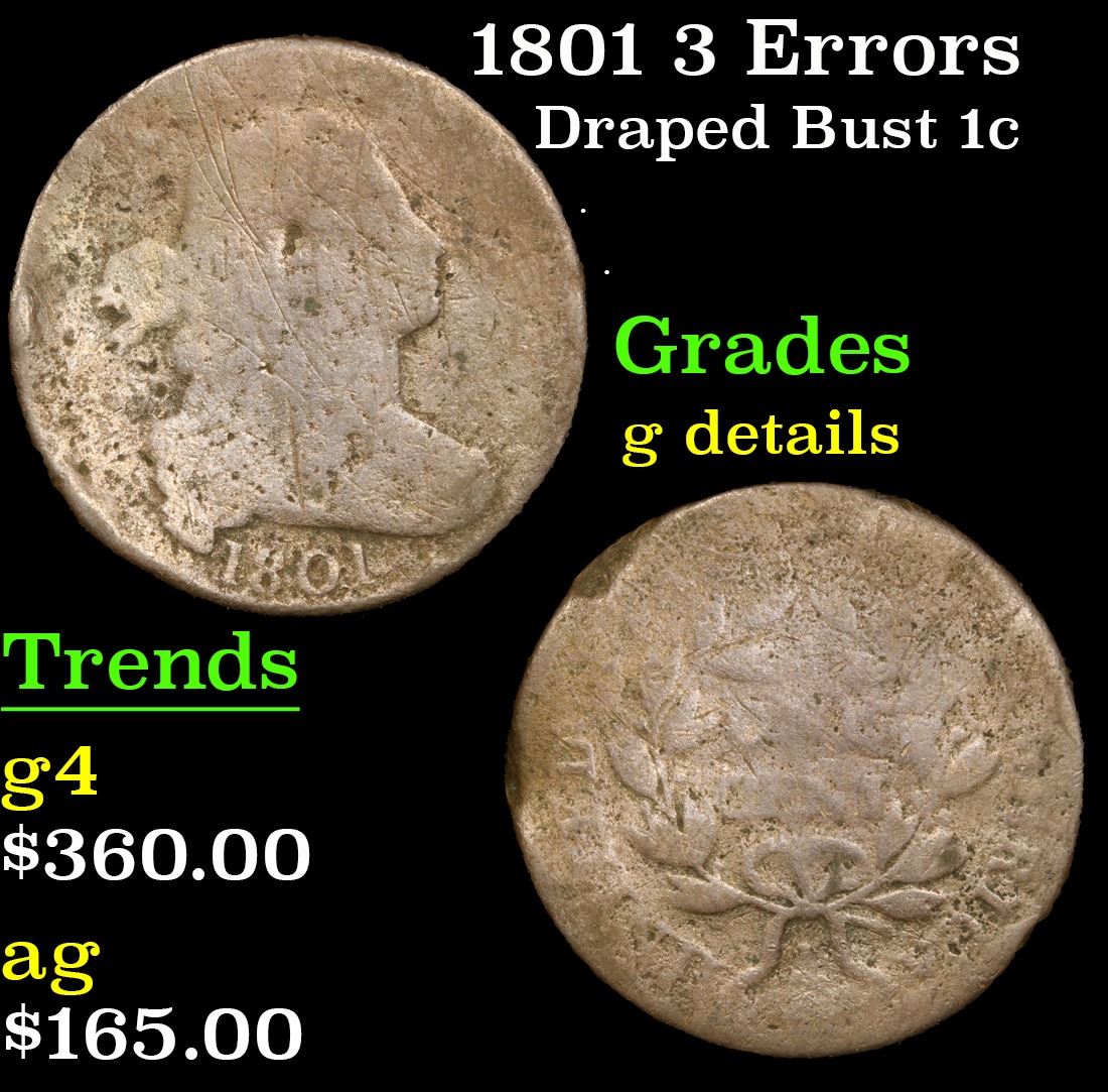 1801 3 Errors Draped Bust Large Cent 1c Grades g details. A Corey's Pick
