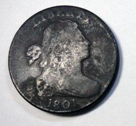 1801 3 error reverse and die state B heavy cracks large cent,moderate corrosion