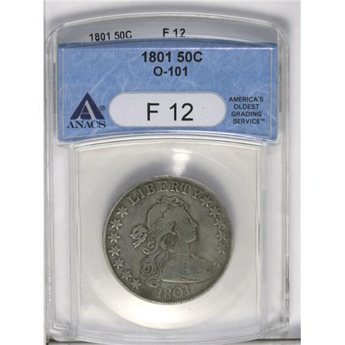 1801 50C Fine 12 ANACS. O-101, R.3. Die crumbling on t 1801