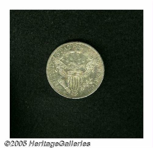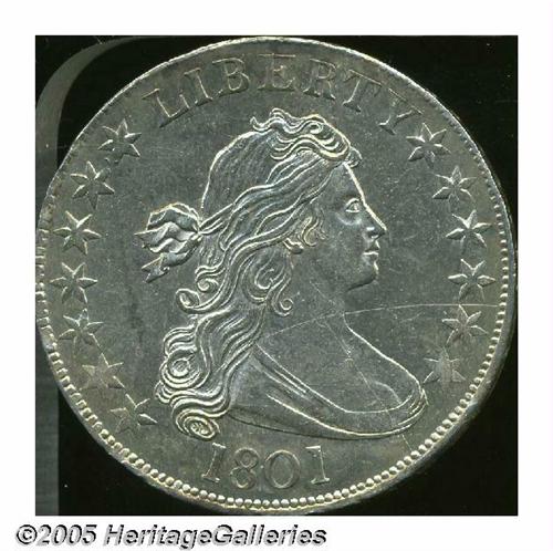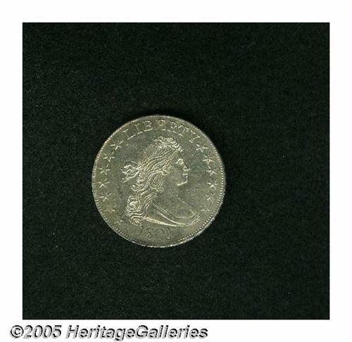 <B>1801<50C> MS60 Prooflike, Scratched, Uncertified.</B></I> O-101, R.3. Mintage of Draped Bust Half Dollars resumed in 1801, the first year of the new Heraldic Eagle Reverse. This variety is easily distinguishable by the prominent die lumps on the reverse, probably from using a rusted or pitted die. Despite the pinscratches on both sides, and especially on the obverse, this is still a spectacular coin. In fact, if this one doesn't grab your attention at first glance, you should be sure to give it a second look. Both sides are especially well defined and exhibit highly reflective, fully brilliant fields as if the planchet had special preparation prior to striking. There is almost no doubt that some cataloger, in years gone by, would have called this a Proof.