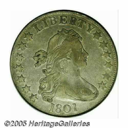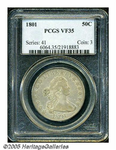 <B>1801<50C> VF35 PCGS.</B></I> O-101, R.3. First year of the Heraldic Eagle type and a very scarce issue with a mintage of 30,289 coins. The surfaces are a subdued silvery-gray with some darkening noted on the portrait.