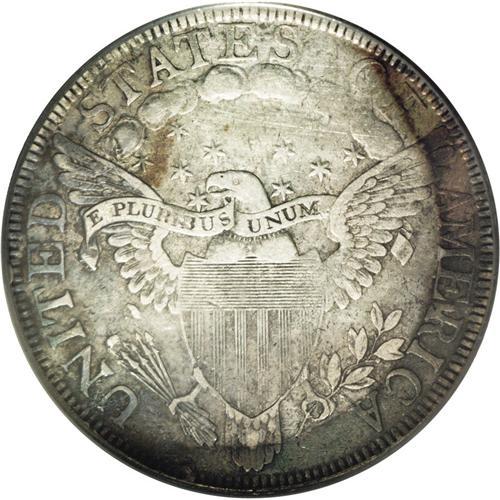 <B>1801<50C> VF35 PCGS.</B></I> O-101, R.3. Quickly identified by the die lumps near the arrowheads, Overton-101 is one of only two die marriages (both sharing the same obverse) for this premier Heraldic Eagle half dollar date. Just 30,289 pieces were originally struck and survivors above low-end VF are a significant find for the early half specialist. Predominately a light silver-gray with arcs of much deeper charcoal and tobacco-brown toning that wrap around each side. Population: 16 in 35, 33 finer (3/06). <BR><BR><B>Important notice:</B> Heritage usually auctions material at the rate of 200-250 lots per hour. On some occasions eBay Live bid software or the Internet may not be able to keep up with the pace of the auction. We recommend placing a realistic absentee bid now as insurance to avoid disappointment. Occasionally the auctioneer may eliminate or reject an eBay Live bid, and the auctioneer may also reopen a lot after the close of the eBay live bidding (usually because we missed an audience bid), and may reject your bid even if it shows you as the winning bidder. By bidding via eBay Live, you agree that Heritage may award the lot to another bidder at its sole discretion under the circumstances described above or any other reasonable circumstances. Since eBay bids are not shown to us until we open the lot on the floor, we treat those bids just like floor bids. In most cases the floor responds before the eBay bid is presented to us, due to Internet lag time, so for consistency we have made it a policy that floor bids are always considered first over tie eBay live bids. Also please note that all Heritage lots purchased through eBay Live carry a 20% Buyer's Premium. Please make sure you read the Terms and Conditions before you bid. This lot is being auctioned in conjunction with a live floor auction by Heritage Galleries & Auctioneers. All final auction and invoice information will be supplied by Heritage Galleries & Auctioneers, and all other information should be considered preliminary. Lot:1925 <BR><BR><B>Winning Notification and Billing:</B> After the FINAL session in this auction is complete, Heritage will send e-mail and snail mail invoices. This process normally takes several days. All final auction and invoice information will be supplied by Heritage Galleries & Auctioneers, and all other information should be considered preliminary. <BR><BR>This auction will be conducted on a live auction floor and over the Internet through eBay Live. If you choose to place an absentee bid, please take a moment to <font color='#0000ff'><u><a href='http://pages.ebay.com/liveauctions/help/before/laabsentee.html'>learn how eBay Live absentee bidding works</a></u></font><font color='#000000'>