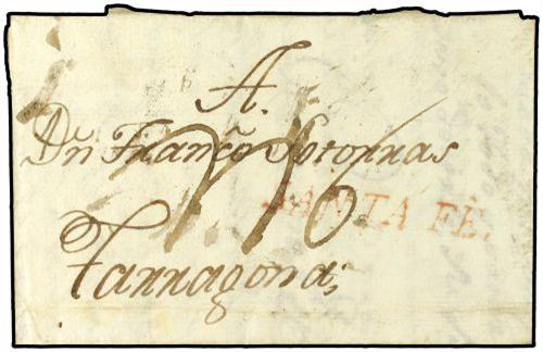1801 (7-Enero) CARTAGENA DE INDIAS a TARRAGONA (España). Marca lineal SANTA FE, tasada a la llegada