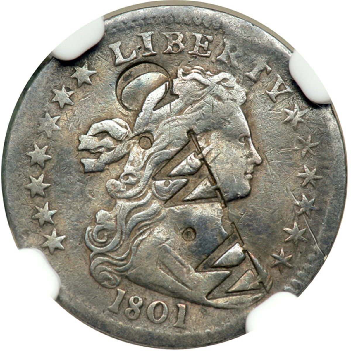 1801 Draped Bust Half Dime. NGC VF Details, countermarked. Stamped C.W.W. across the obverse; all, uniformly toned an antique bluish-grey.