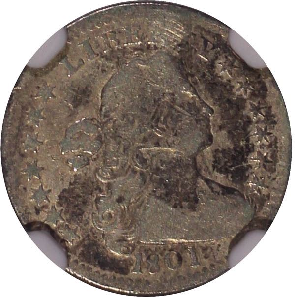 1801 Draped Bust Half Dime. NGC graded Details of Very Good. Bent, cleaned.
