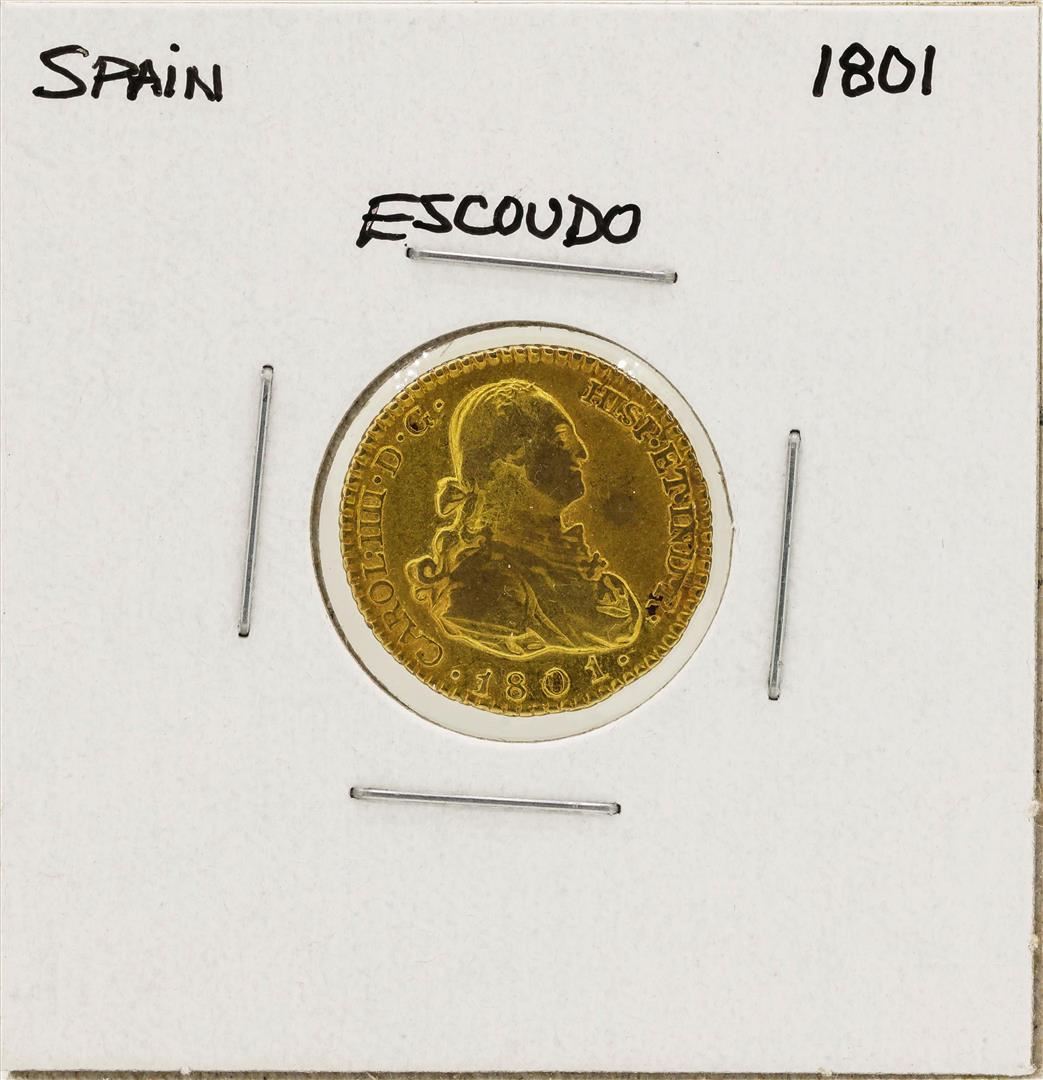 One 1801 Charles IV Spanish Escudo Gold Coin.