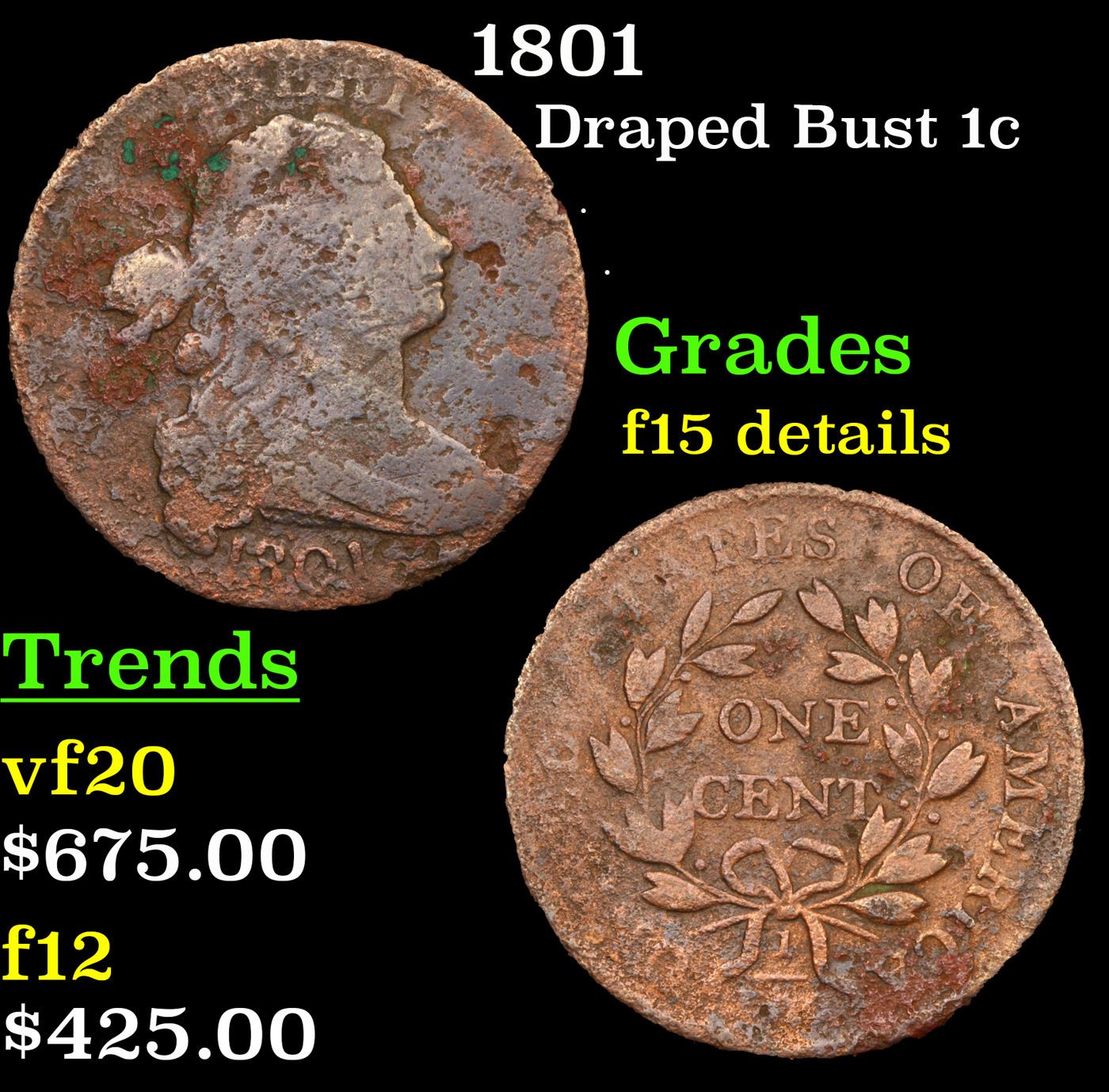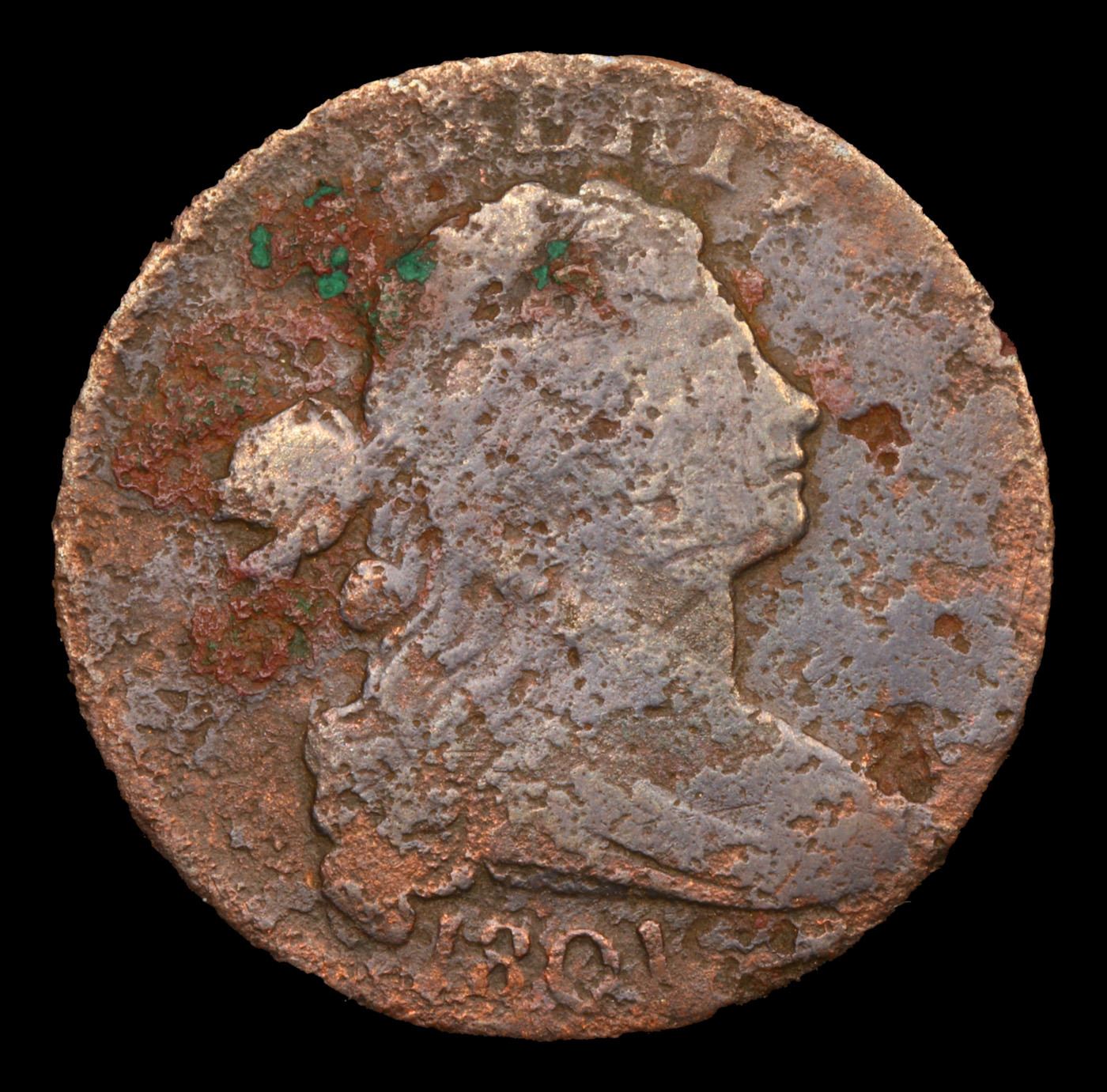 1801 Draped Bust Large Cent 1c Grades F Details.