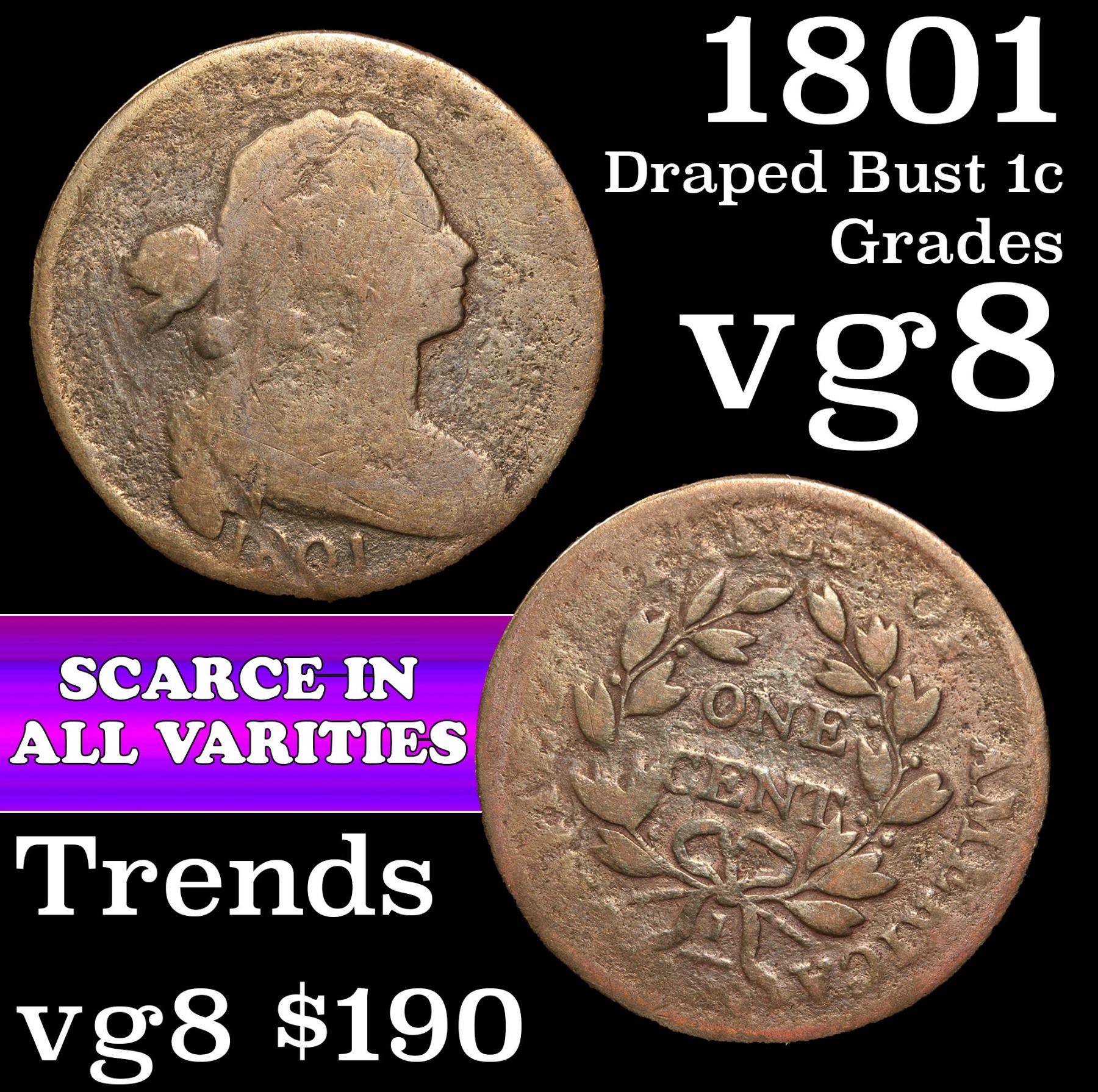 1801 Draped Bust Large Cent 1c Grades vg, very good.