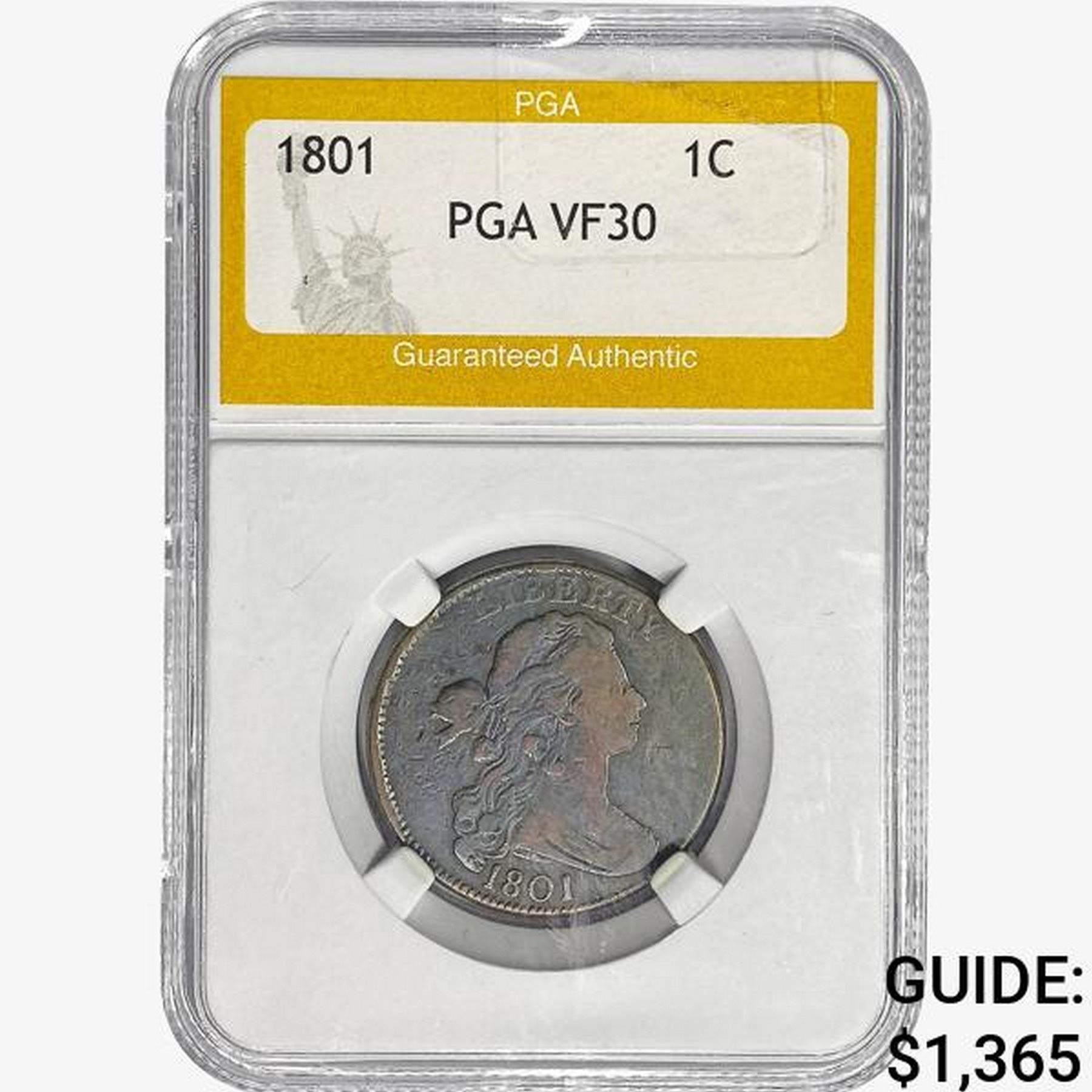 1801 Draped Bust Large Cent PGA VF30