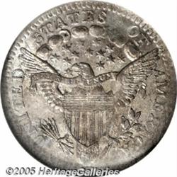 <B>1801 H10C AU58 NGC.</B></I> V-1, LM-2, R.4. Light apricot and lilac hues overlay the shimmering creamy-gray surfaces. Sharply struck aside from portions of the vertical shield lines. There are a few minor handling marks, but these do not distract. Bold clashmarks are noted in the right obverse field. One of only two die pairings known for the year, and in demand from both date and variety collectors. Population: 2 in 58, 4 finer (2/05).