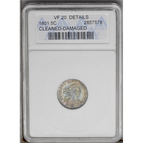 1801 H10C --Cleaned, Damaged--ANACS. VF20 Details. V-1 1801[H10C]--Cleaned, Damaged--ANACS. VF20 Det