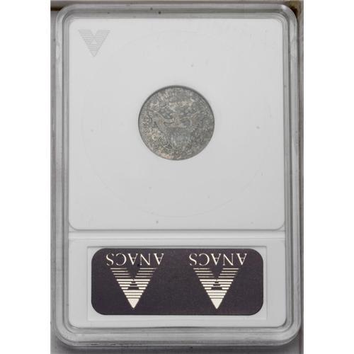 <B>1801<H10C>--Cleaned, Damaged--ANACS. VF20 Details.</B></I> V-1,2 LM-2, R.4. Slightly bent with noticeable roughness beneath old blue and golden toning. Attributing an 1801 half dime has been the source of confusion for decades. Valentine listed two varieties, but recently it has been shown that these are from the same pair of dies, in various die states. This later state of the dies exhibits a heavy crack through the T in LIBERTY to the portrait and another below the bust to the rim.
