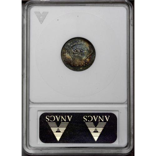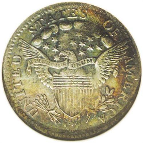 <B>1801<H10C>--Damaged--ANACS. AU50 Details.</B></I> V-1 and 2, LM-2, R.4. Exceedingly deep multicolored toning adorns each side of this essentially completely detailed example. Several moderate marks are noted on Liberty's portrait, and a large "X" has been scratched into the eagle's shield. Broad machine doubling is obvious on STATES.