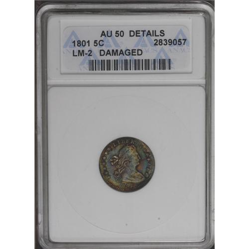1801 H10C --Damaged--ANACS. AU50 Details. V-1 and 2, LM 1801