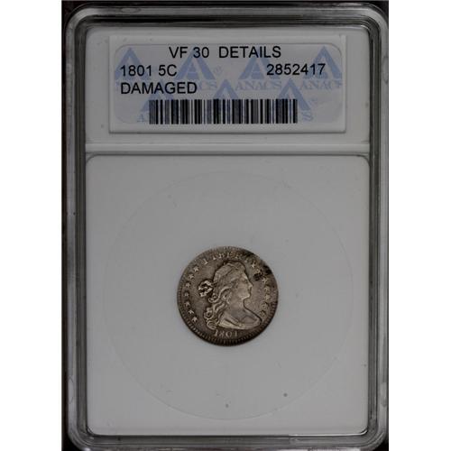 1801 H10C --Damaged--ANACS. VF30 Details. V-1 and 2, LM 1801