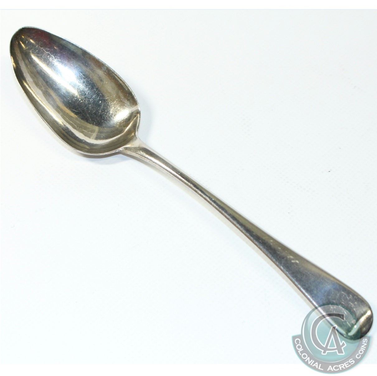 1801 London; William Eley & William Fearn Sterling Silver Serving Spoon. Spoon measures approx. 8 1/2 inches in length with a weight of 62.34 grams. Has been monogrammed with a 'B'.