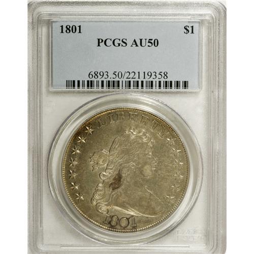 1801 S$1 AU50 PCGS. B-4, BB-214, R.4. The first 1 in t