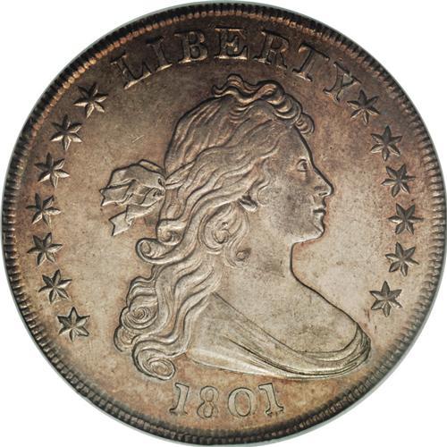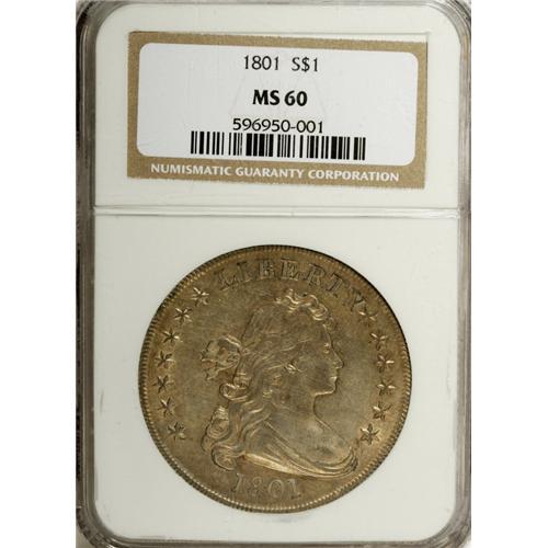 1801 S$1 MS60 NGC. B-3, BB-213, R.3. The small dot to
