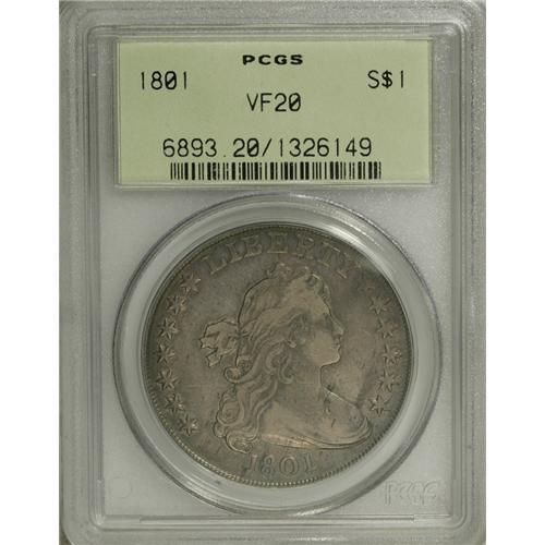 1801 S$1 VF20 PCGS. B-4, BB-214, R.3. Die State III. A
