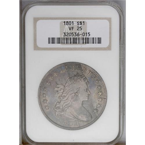 1801 S$1 VF25 NGC. B-3, BB-213, R.3. Well struck on th 1801[img border='0' src='http://www.heritagec