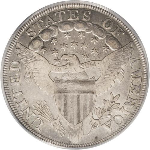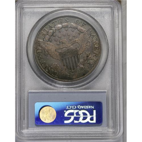 <B>1801<img border='0' src='http://www.heritagecoins.com/images/star.gif' width=10 height=10>$1> VF25 PCGS.</B></I> B-3, BB-213, R.3. The first 1 in the date is distant from the curl, there is a small dot to the left of the center dot, and the right foot of all Ts on the reverse are missing. A delicate mix of gray, sky-blue, and magenta toning occupies each side, and the well centered design features retain nice definition, though most of the letters in PLURIBUS are weak. A few minute abrasions are scattered about the obverse, as are some light pinscratches, the two most noticeable occurring on Liberty's head. Overall, a decent early dollar for the grade.