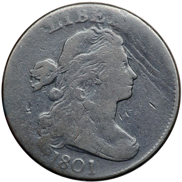 1801 S-213 R2 VG8. Glossy olive brown and steel with slightly lighter chocolate toning on the highpoints. Only minor marks, none significant. M-LDS, Breen state VII. The date is strong and the legends are clear. Holmes #0237.