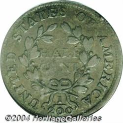 <table><tr><td><table><tr><td>1802/0 1/2 C Reverse of 1802 Fine 12 PCGS. B-2, C-2, R.3. Manley Die State 2.0, "Very Scarce." The underdigit 0 is bold, visible on both sides of the 2 in the date. A leaf pair below the second S in STATES identifies the Reverse of 1802. This lavender-brown example has a small spot in the left obverse field and minor granularity between ES in STATES. A faint pinscratch on the upper portion of the portrait does not distract. Only two die marriages are known for 1802 Half Cents. Cohen-1 is very rare, and although Cohen-2 is collectible in lowly circulated grades, it is rare in Fine condition. Population: 5 in 12, 23 finer (2/04).From the Eric A. Kreuter Collection. <BR><BR><B>Important notice:</B> Heritage usually auctions material at the rate of 200-250 lots per hour. On some occasions eBay Live bid software or the Internet may not be able to keep up with the pace of the auction. We recommend placing a realistic absentee bid now as insurance to avoid disappointment. Occasionally the auctioneer may eliminate or reject an eBay Live bid, and the auctioneer may also reopen a lot after the close of the eBay live bidding (usually because we missed an audience bid), and may reject your bid even if it shows you as the winning bidder. By bidding via eBay Live, you agree that Heritage may award the lot to another bidder at its sole discretion under the circumstances described above or any other reasonable circumstances. Since eBay bids are not shown to us until we open the lot on the floor, we treat those bids just like floor bids. In most cases the floor responds before the eBay bid is presented to us, due to Internet lag time, so for consistency we have made it a policy that floor bids are always considered first over tie eBay live bids. Also please note that all Heritage lots purchased through eBay Live carry a 20% Buyer's Premium. Please make sure you read the Terms and Conditions before you bid. <BR><BR><B>IMPORTANT ANNOUNCEMENT ABOUT RESERVES:</B> Heritage now divulges all reserves on its web site 7 days before every auction. If you want to know whether the reserve on this lot has been met, and if not, what the reserve amount is, please visit this lot page on the HeritageCoin.com web site, or email: bid@HeritageGalleries.com </span></font></td></tr></table></td></tr></table>
