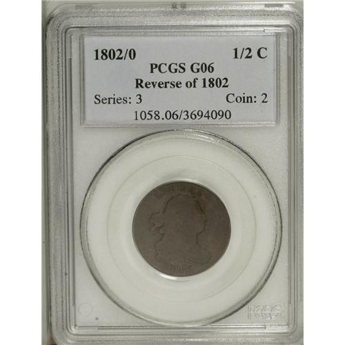 1802/0 1/2 C Reverse of 1802 Good 6 PCGS. C-2, B-2, R.