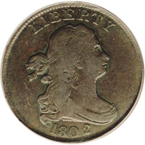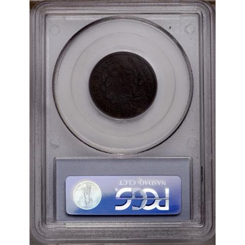 <B>1802/0<1/2 C> Reverse of 1802 VF25 PCGS.</B></I> C-2, B-2, R.3. The 2 in the date is within a large 0 underdigit, and the right wreath termination has a double leaf, which identifies the Second Reverse or Reverse of 1802 variety. Also, Ronald Manley (1998), in his <I>The Half Cent Die State</B></I> treatise, writes that this is: "The only Draped Bust reverse with a berry on the right branch between the lowest leaf and the stem end." The present example displays medium brown surfaces that are relatively clean. Just a few minute contact marks are seen on Liberty's cheek and neck. The design elements retain fairly sharp detail, though the letters in HALF CENT are weak. EAC 12.
