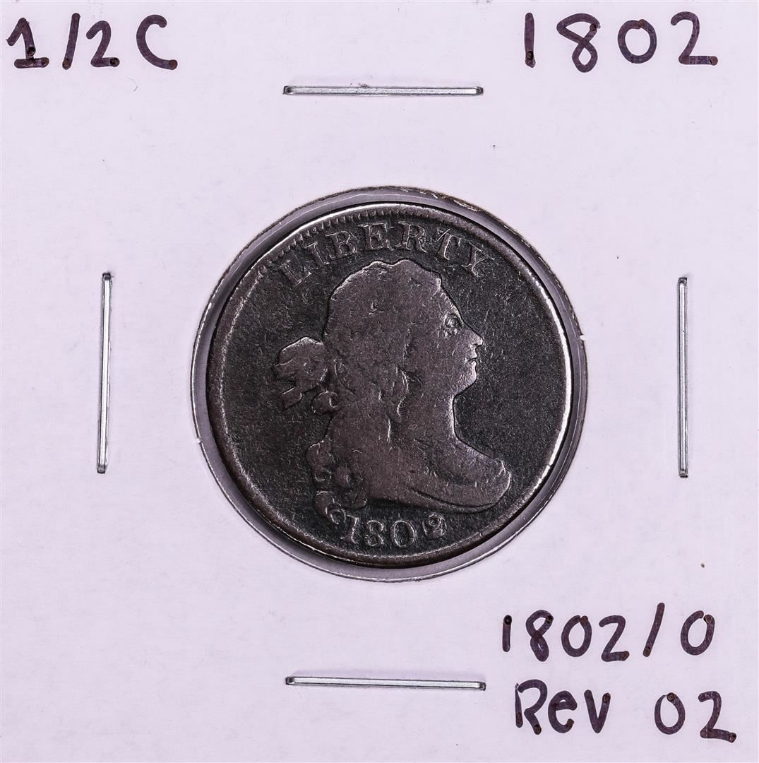 One 1802/0 Reverse 02' Draped Bust Half Cent Coin.