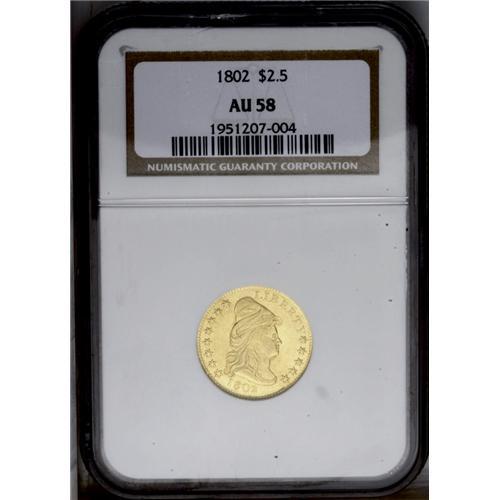 "1802/1 $2 1/2 AU58 NGC. Breen-6118, Bas"