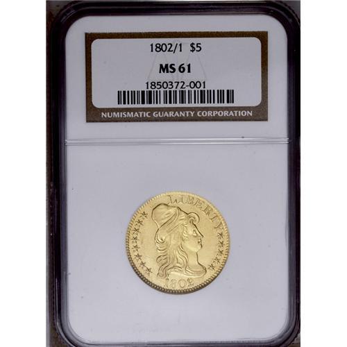 1802/1 $5 MS61 NGC. Breen-6440, B. 2-H and I, Miller-5 1802/1