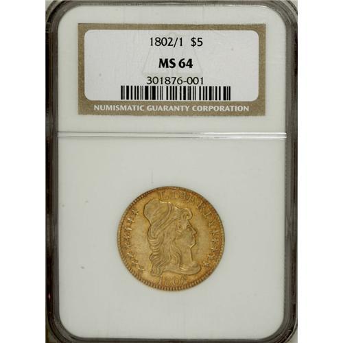 1802/1 $5 MS64 NGC. Breen-6440, BD-8, R.4. The 1802/1